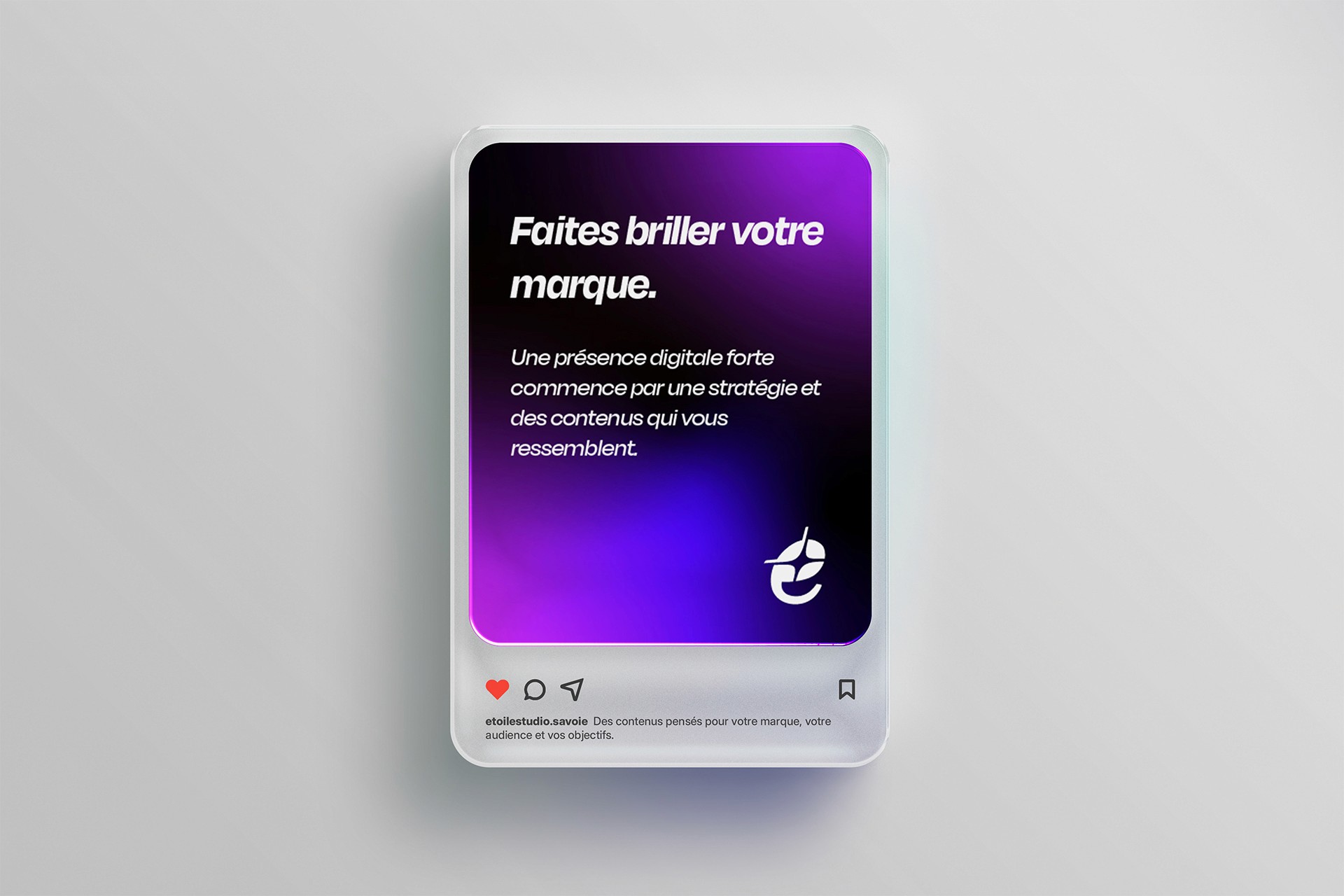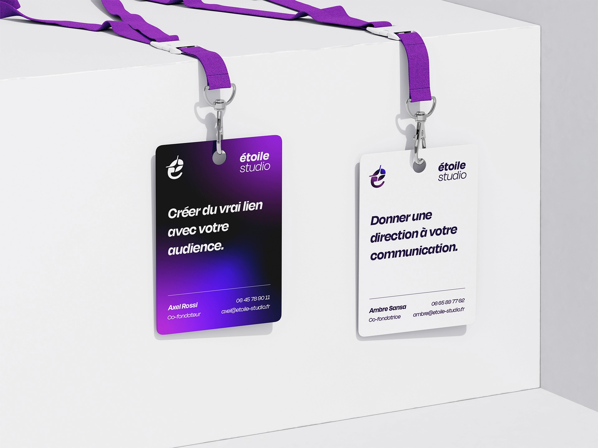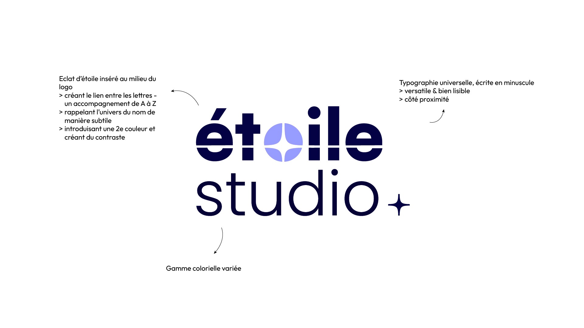 Deux pistes créatives ont été développées afin d’explorer différentes interprétations graphiques de l’univers d’Étoile Studio, tout en reflétant ses valeurs de créativité, de proximité et de dynamisme.