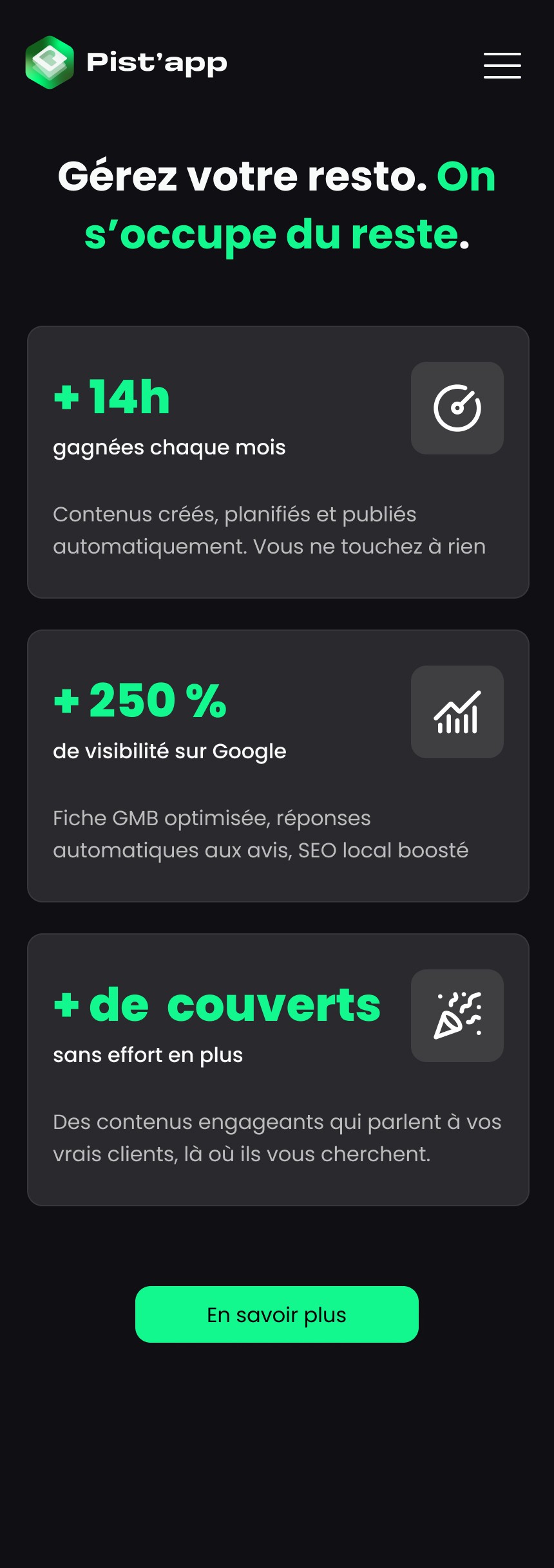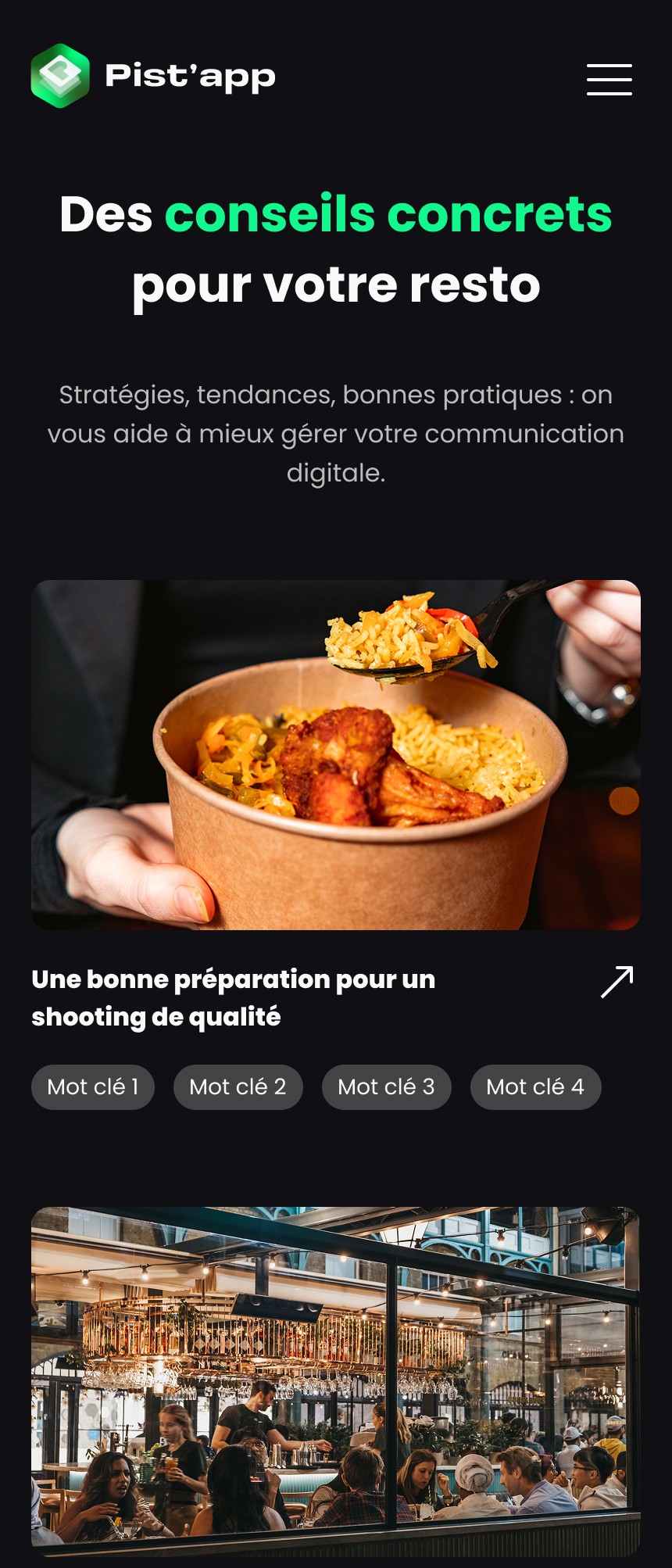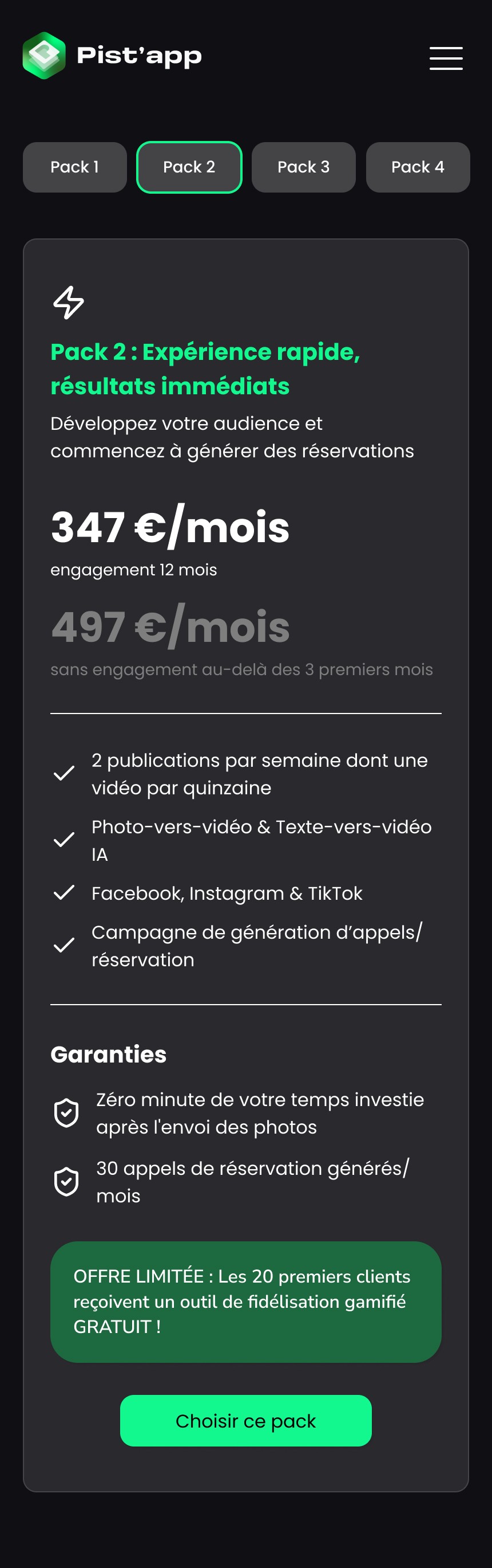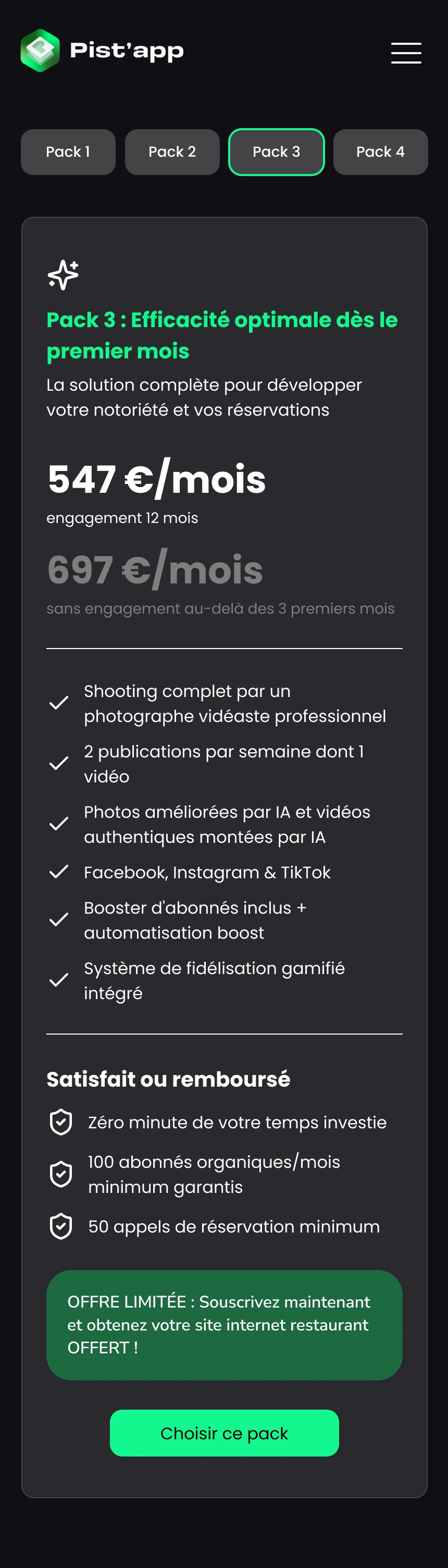 Le site e-commerce de la Pist'app a été conçu pour présenter, promouvoir et commercialiser l’application, tout en simplifiant un concept digital encore peu familier pour de nombreux restaurateurs.