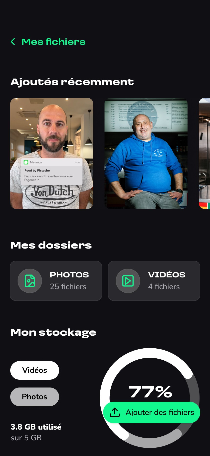 L’interface de l’application repose sur une direction artistique moderne, minimaliste et impactante, pensée pour mettre en valeur les informations essentielles de manière claire et efficace. Une touche de vert, utilisée comme couleur d’accent, vient rythmer l’interface et guider l’utilisateur dans son parcours. L’ensemble adopte un langage visuel digital et high-tech, tout en conservant une approche professionnelle et accessible, adaptée aux restaurateurs et aux professionnels.