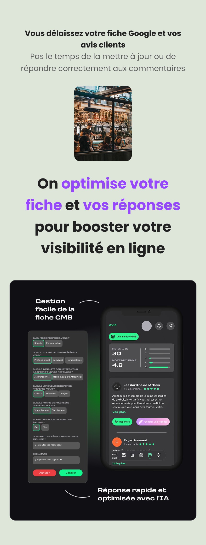 L’expérience a été pensée dans une logique de conversion : accroches percutantes, chiffres clés, témoignages, audit rapide de la présence en ligne et appels à l’action récurrents viennent rythmer le parcours utilisateur et encourager l’adoption de la solution.