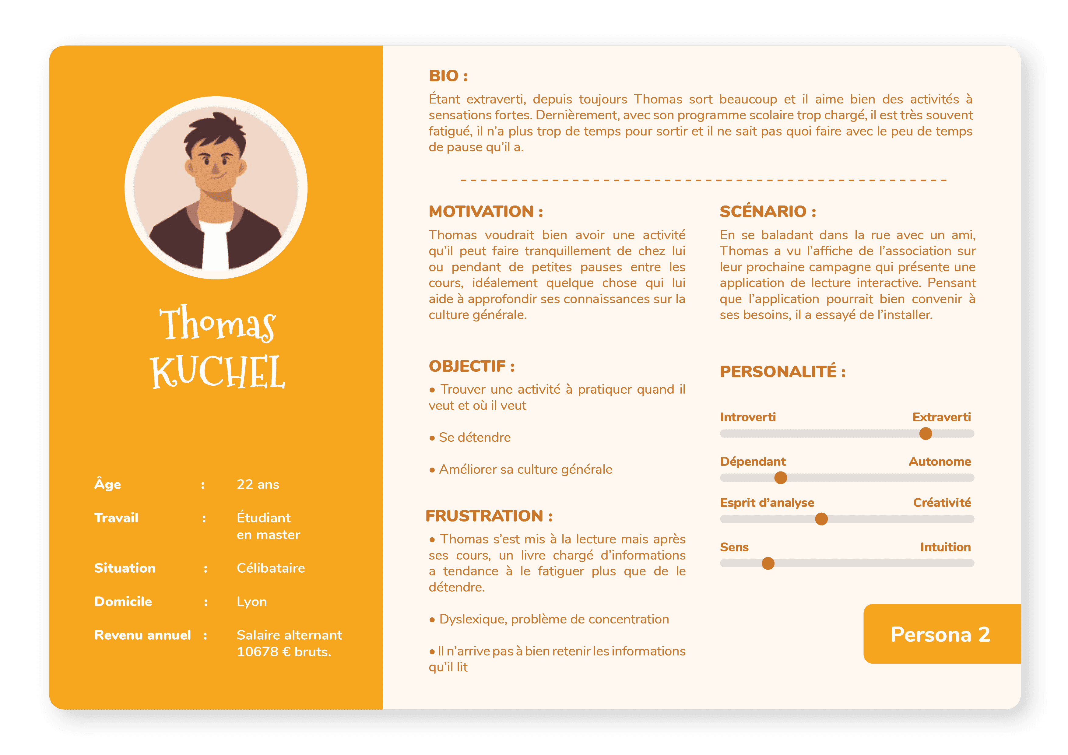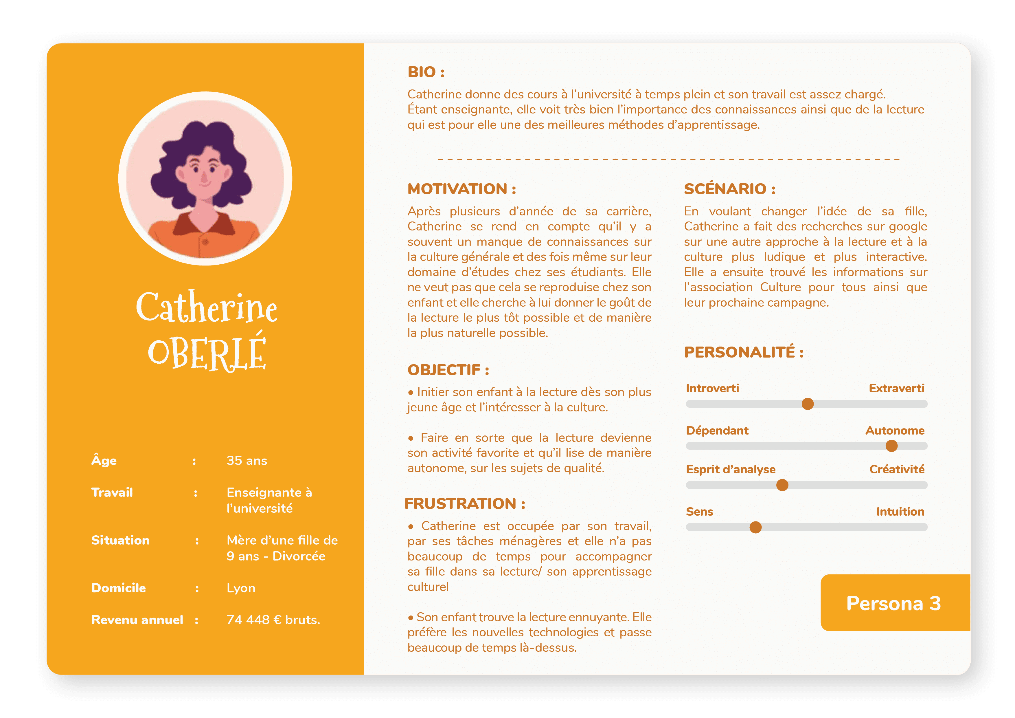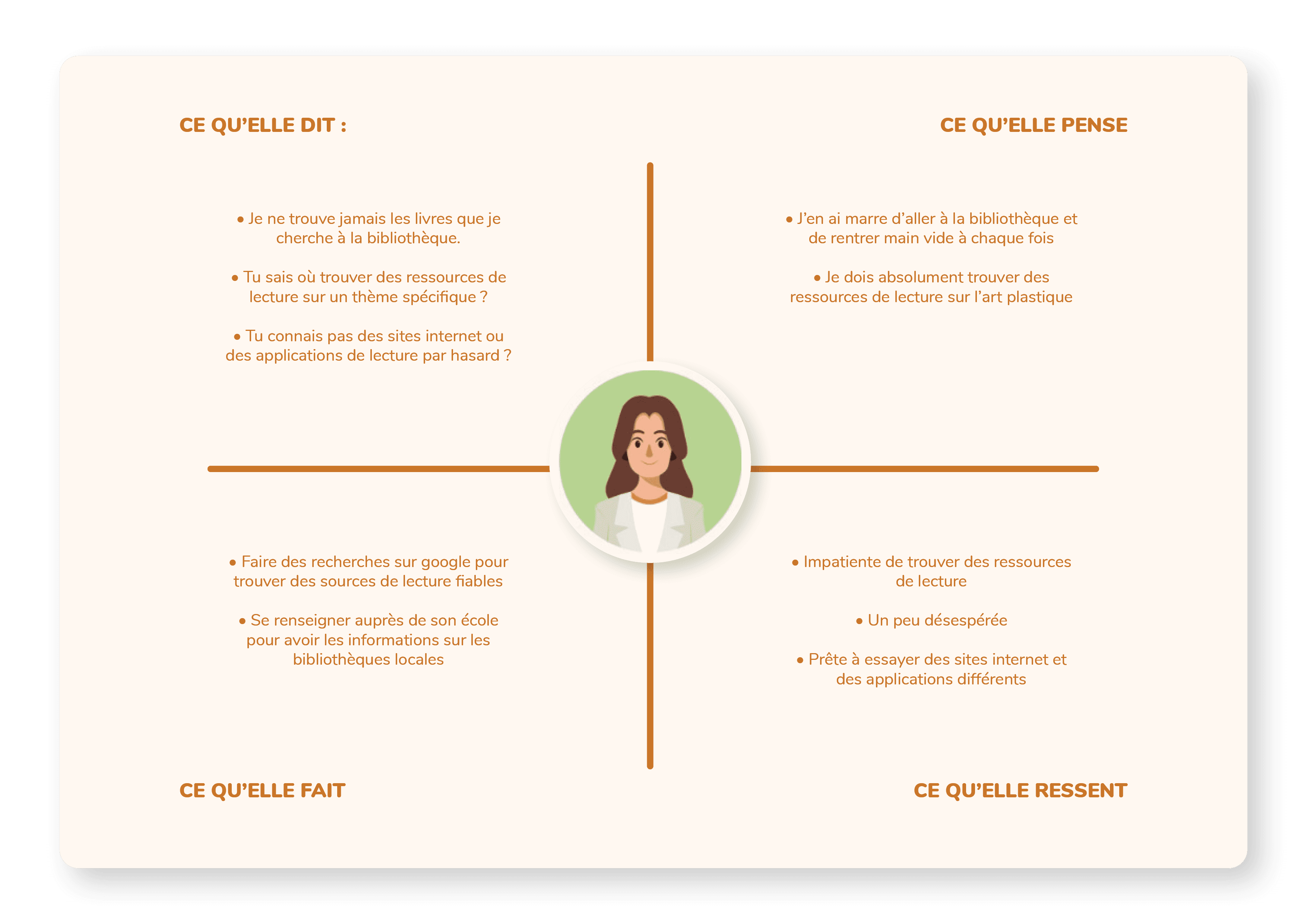 Afin de définir les fonctionnalités et les caractéristiques de mon application, 3 personas ont été créés en parallèle avec des empathy maps. Ce travail m’a permis de me mettre à la place des utilisateurs, de bien comprendre leurs objectifs, leurs frustrations et de pouvoir ensuite concevoir un produit qui répond à leurs besoins spécifiques.