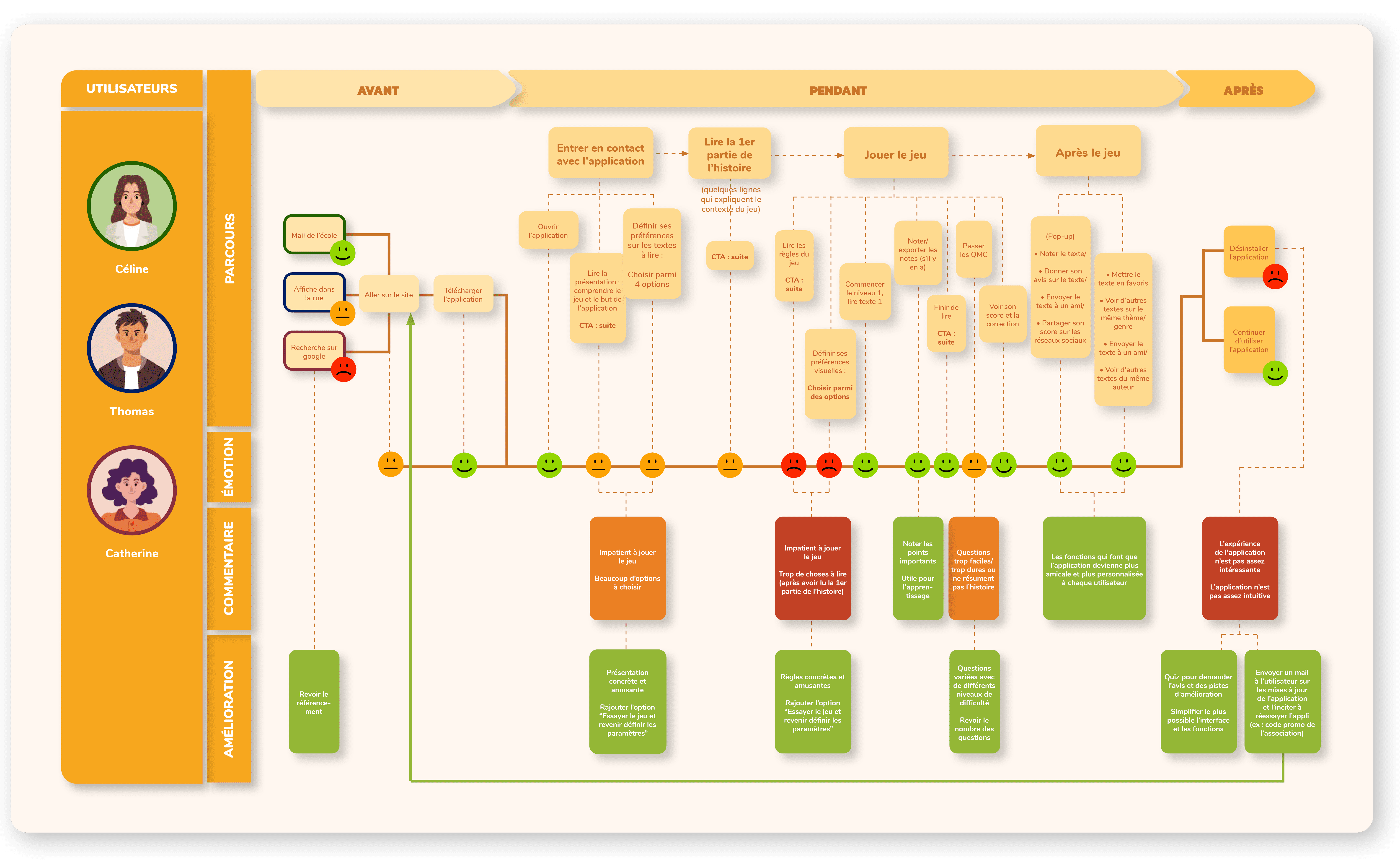Grâce à l'experience map, les "frustrations" éventuelles ont été identifiées ainsi que leurs solutions.